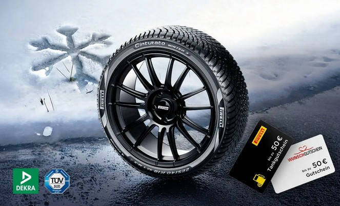Im Aktionszeitraum 01.10.2025 - 15.11.2025 einen Reifensatz Pirelli Winter- oder Ganzjahresreifen kaufen und einen Tank- oder Wunschgutschein erhalten!